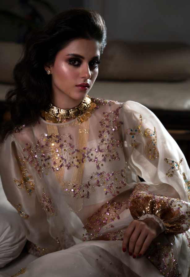 At the heart of this collection lies meticulous craftsmanship — a signature of Pakistan’s Luxury womenswear brand. Each ensemble is adorned with hand-applied detail, where every sequin is thoughtfully placed to create dimension, texture, and radiance. The shimmer is not overwhelming; it is intentional. It catches the light softly, revealing layers of artistry as the wearer moves.