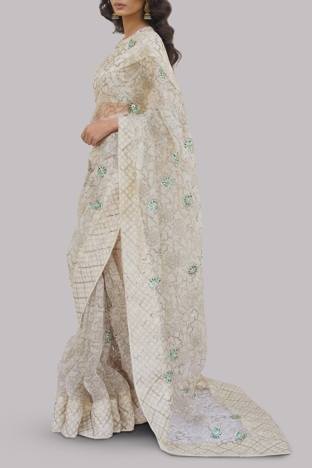 Afterglow Block Printed and Embellished Organza Sari